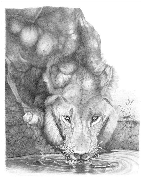 drawing of a male lion (Panthera leo)